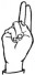 На ћирилици написано БЛАЖА ПЕШИЋ састоји се из 10 слова [?]. Исписано ћириличном једноручном азбуком за глувонеме: